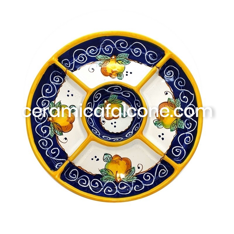 Piatto antipastiera in ceramica, 1 pz tonda, con 5 scompartii
