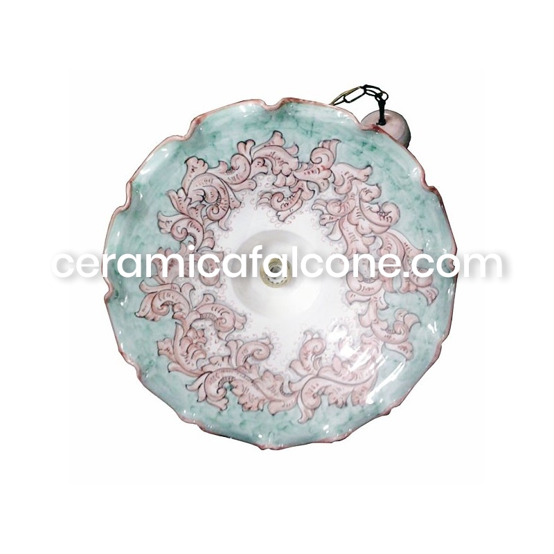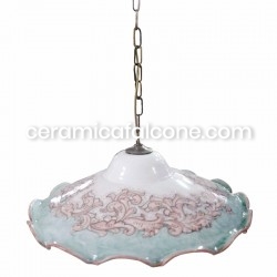 Questo lampadario piatto in ceramica vietrese è un'autentica espressione dell'artigianato locale. Interamente fatto a mano e decorato a mano con stile floreale da maestri ceramisti, ogni pezzo è unico e porta con sé il vibrante spirito artistico di Vietri sul Mare. La sua forma piatta e le decorazioni vivaci, tipiche della tradizione vietrese, lo rendono un elemento distintivo capace di infondere un tocco di colore e originalità a qualsiasi ambiente, diffondendo una luce calda e accogliente.