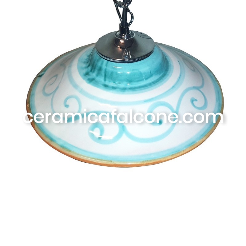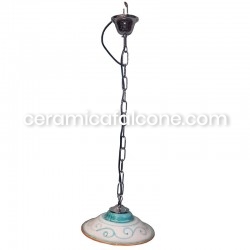 Questo lampadario piatto in ceramica vietrese è un'autentica espressione dell'artigianato locale. Interamente fatto a mano e decorato da maestri ceramisti, ogni pezzo è unico e porta con sé il vibrante spirito artistico di Vietri sul Mare. La sua forma piatta e le decorazioni vivaci, tipiche della tradizione vietrese, lo rendono un elemento distintivo capace di infondere un tocco di colore e originalità a qualsiasi ambiente, diffondendo una luce calda e accogliente.