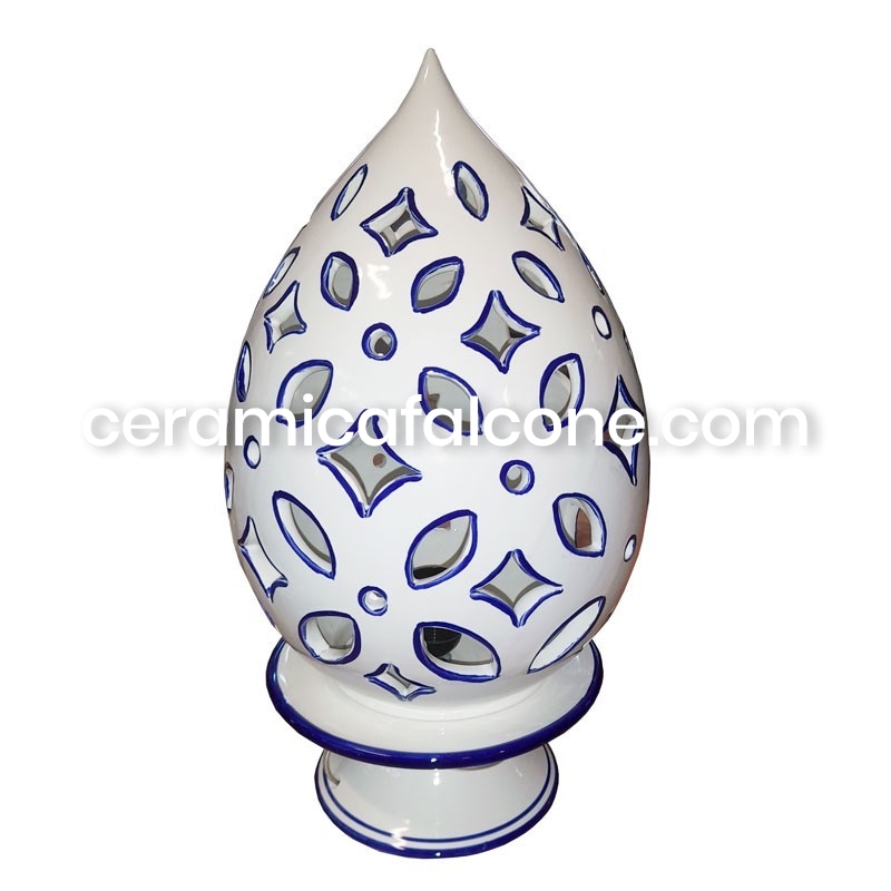 Questo lume in ceramica vietrese è un'autentica espressione dell'artigianato locale. Interamente fatto a mano e intarsiato con motivi floreali per permettere alla luce di fuoriuscire, ogni pezzo è unico e porta con sé il vibrante spirito artistico di Vietri sul Mare. La sua forma di pesce piatta e le decorazioni vivaci, tipiche della tradizione vietrese, lo rendono un elemento distintivo capace di infondere un tocco di colore e originalità a qualsiasi ambiente.