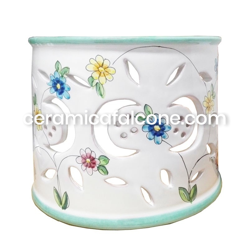 Questo Applique traforato in ceramica vietrese è un'autentica espressione dell'artigianato locale. Interamente fatto a mano e decorato con motivi floreali che ricordano la Costiera Amalfitana da maestri ceramisti, ogni pezzo è unico e porta con sé il vibrante spirito artistico di Vietri sul Mare. La sua forma e le decorazioni vivaci, tipiche della tradizione vietrese, lo rendono un elemento distintivo capace di infondere un tocco di colore e originalità a qualsiasi ambiente.
