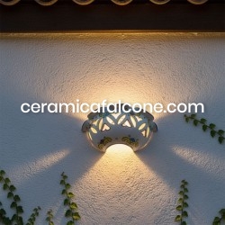 Questo Applique traforato in ceramica vietrese è un'autentica espressione dell'artigianato locale. Interamente fatto a mano e decorato con motivi floreali che ricordano la Costiera Amalfitana da maestri ceramisti, ogni pezzo è unico e porta con sé il vibrante spirito artistico di Vietri sul Mare. La sua forma e le decorazioni vivaci, tipiche della tradizione vietrese, lo rendono un elemento distintivo capace di infondere un tocco di colore e originalità a qualsiasi ambiente. Ideale anche per esterni.
