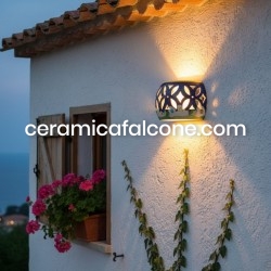 Questo Applique traforato in ceramica vietrese è un'autentica espressione dell'artigianato locale. Interamente fatto a mano e decorato in blu che ricordano la Costiera Amalfitana da maestri ceramisti, ogni pezzo è unico e porta con sé il vibrante spirito artistico di Vietri sul Mare. La sua forma e le decorazioni vivaci, tipiche della tradizione vietrese, lo rendono un elemento distintivo capace di infondere un tocco di colore e originalità a qualsiasi ambiente. Ideale anche per esterni.