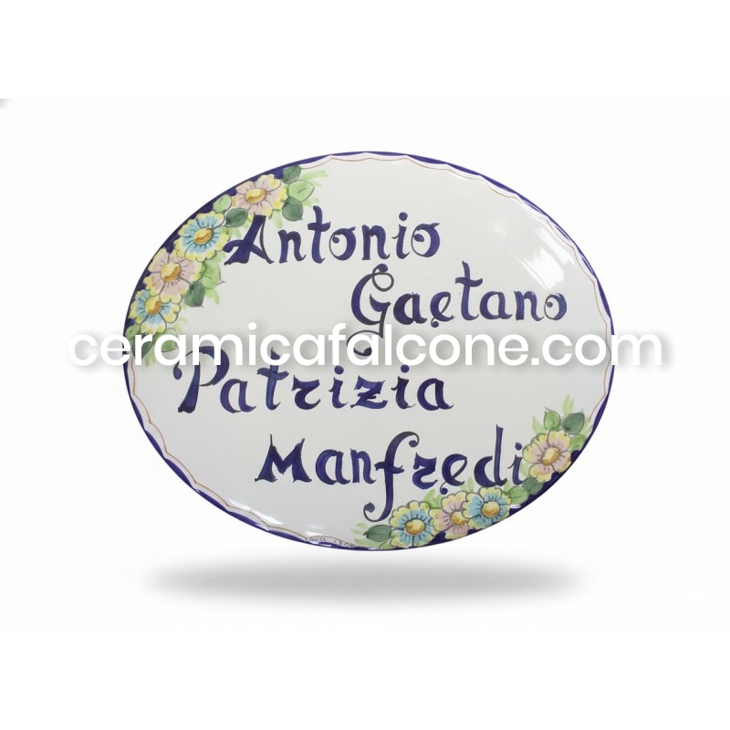 Questo Targa in ceramica ovale personalizzabile è un'autentica espressione dell'artigianato locale. Interamente fatta e decorata a mano che ricorda la costiera amalfitana, da maestri ceramisti, ogni pezzo è unico e porta con sé il vibrante spirito artistico di Vietri sul Mare. La sua forma e le decorazioni vivaci, tipiche della tradizione vietrese, lo rendono un elemento distintivo capace di infondere un tocco di colore e originalità a qualsiasi ambiente.