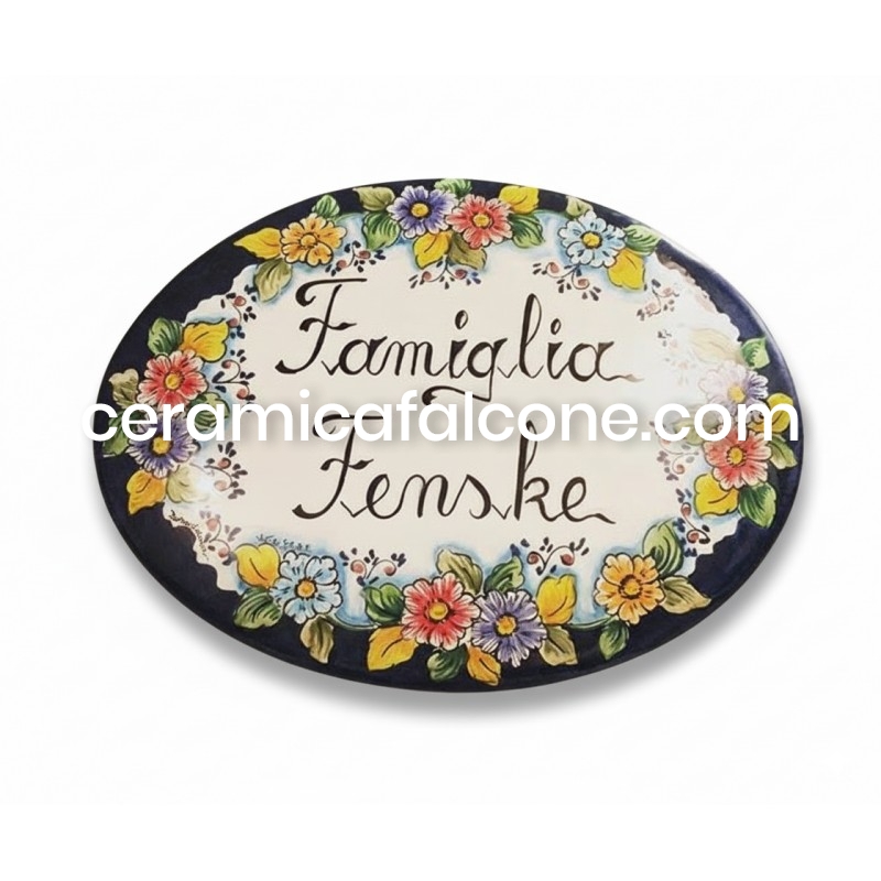 Targa in ceramica personalizzata con decoro floreale