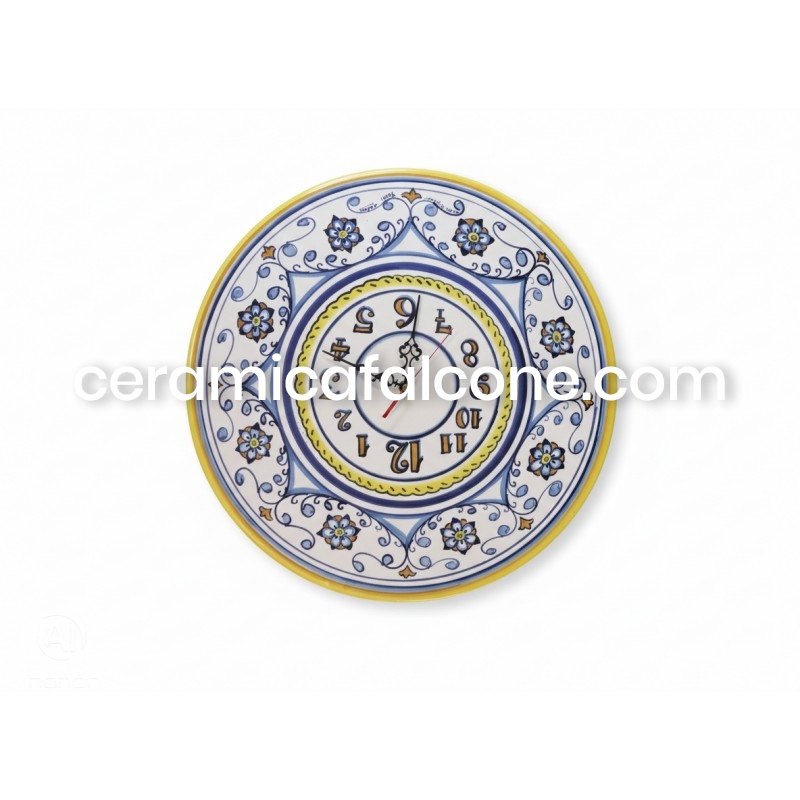 Orologio decorato stile moderno con decoro a piante realizzato da maestri ceramisti Vietresi modello 2